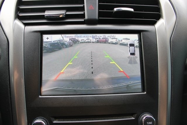 EQUIPPED WITH Equipment Group 202A, Fusion SE Luxury Package (Auto-Dimming Rear-View Mirror, Heated Leather Front Bucket Seats, Intelligent Access w/Remote Start System, Leather-Wrapped Steering Wheel, LED Fog Lamps, LED Headlamps, Upgraded Sideview Mirrors w/Heat, and Warm Interior Accents), Fusion SE Technology Package (Dual-Zone Electronic Automatic Temperature Control and SYNC 3 Communications & Entertainment System), 6-Speed Automatic, AWD, 4-Wheel Disc Brakes, 6 Speakers, ABS brakes, Air Conditioning, Alloy wheels, AM/FM radio: SiriusXM, Brake assist, Bumpers: body-color, CD player, Cloth/Vinyl Bolster Seats, Compass, Delay-off headlights, Driver door bin, Driver vanity mirror, Dual front impact airbags, Dual front side impact airbags, Electronic Stability Control, Emergency communication system: 911 Assist, Exterior Parking Camera Rear, Four wheel independent suspension, Front anti-roll bar, Front Bucket Seats, Front Center Armrest, Front reading lights, Fully automatic headlights, Illuminated entry, Knee airbag, Low tire pressure warning, Occupant sensing airbag, Outside temperature display, Overhead airbag, Overhead console, Panic alarm, Passenger door bin, Passenger vanity mirror, Power door mirrors, Power driver seat, Power passenger seat, Power steering, Power windows, Radio data system, Radio: AM/FM Stereo/MP3/Single-CD, Rear anti-roll bar, Rear reading lights, Rear seat center armrest, Rear window defroster, Remote keyless entry, Security system, SiriusXM Radio, Speed control, Speed-sensing steering, Speed-Sensitive Wipers, Split folding rear seat, Spoiler, Steering wheel mounted audio controls, SYNC Communications & Entertainment System, Tachometer, Telescoping steering wheel, Tilt steering wheel, Traction control, Trip computer, Variably intermittent wipers, and Wheels: 18 Prem Painted Dark Stainless.