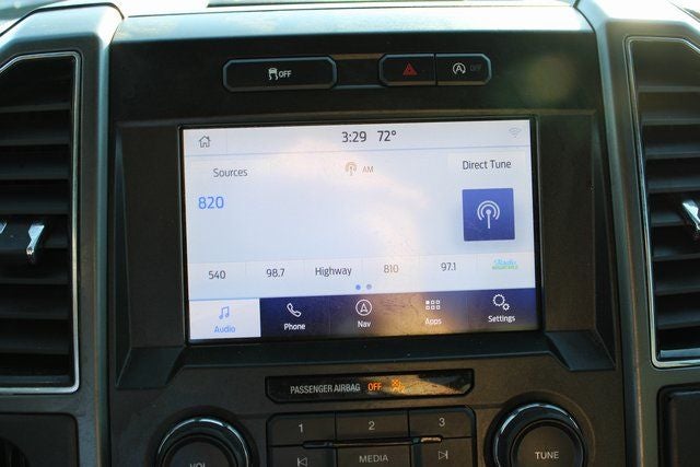 EQUIPPED WITH Equipment Group 302A Luxury (Auto-Dimming Rear-View Mirror, Power Glass Heated Sideview Mirrors, Rear Window Defroster, Remote Start System, and SiriusXM Radio), XLT Chrome Appearance Package (2-Bar Style Grille w/Chrome 2 Minor Bars, Chrome Door & Tailgate Handles w/Body-Color Bezel, Chrome Step Bars, Single-Tip Chrome Exhaust, and Wheels: 18 Chrome-Like PVD), XLT Power Equipment Group (LED Box Lighting and Power-Sliding Rear Window), 110V/400W Outlet, 3.55 Axle Ratio, 4-Wheel Disc Brakes, 6 Speakers, ABS brakes, Air Conditioning, Alloy wheels, AM/FM radio, AppLink/Apple CarPlay and Android Auto, Auto High-beam Headlights, Brake assist, Bumpers: chrome, Class IV Trailer Hitch Receiver, Compass, Delay-off headlights, Driver door bin, Driver vanity mirror, Dual front impact airbags, Dual front side impact airbags, Electronic Stability Control, Emergency communication system: SYNC 3 911 Assist, Exterior Parking Camera Rear, Front anti-roll bar, Front Center Armrest w/Storage, Front fog lights, Front wheel independent suspension, Fully automatic headlights, Illuminated entry, Low tire pressure warning, Occupant sensing airbag, Outside temperature display, Overhead airbag, Panic alarm, Passenger door bin, Passenger vanity mirror, Power door mirrors, Power steering, Power windows, Radio data system, Radio: AM/FM Stereo w/6 Speakers, Rear step bumper, Remote keyless entry, Security system, Speed control, Speed-sensing steering, Split folding rear seat, Steering wheel mounted audio controls, SYNC 3, Tachometer, Telescoping steering wheel, Tilt steering wheel, Traction control, Variably intermittent wipers, Voice-Activated Touchscreen Navigation, Voltmeter, and Wheels: 17 Silver Painted Aluminum.