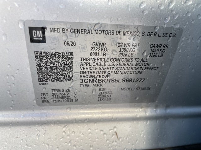 EQUIPPED WITH Cargo Package (LPO) (Retractable Cargo Shade and Vertical Cargo Net (LPO)), Enhanced Convenience & Driver Confidence II Pkg (Advanced Adaptive Cruise Control, Enhanced Automatic Emergency Braking, Following Distance Indicator, Forward Collision Alert, Front Pedestrian Braking, HD Surround Vision, Heated Rear Outboard Seating Positions, IntelliBeam Headlamps, Lane Keep Assist w/Lane Departure Warning, Memory Settings For Driver Seat & Exterior Mirrors, Power Tilt & Telescoping Steering Column, Radio: Chevrolet Infotainment 3 Premium System, Rear Camera Mirror, Safety Alert Seat, SiriusXM w/360L, Ventilated Driver & Front Passenger Seats, and Wireless Charging), Floor Liner Package (LPO) (1st & 2nd Row All-Weather Floor Liners (LPO)), Preferred Equipment Group 1RS, Trailering Equipment (Heavy-Duty Cooling System, Hitch Guidance, and Hitch Guidance w/Hitch View), AWD, 170 Amp Alternator, 3.49 Final Drive Axle Ratio, 4-Wheel Disc Brakes, 6 Speakers, 6-Speaker Audio System Feature, 6-Way Power Front Passenger Seat Adjuster, ABS brakes, Air Conditioning, Alloy wheels, AM/FM radio: SiriusXM, Apple CarPlay/Android Auto, Auto-dimming door mirrors, Auto-dimming Rear-View mirror, Automatic temperature control, Brake assist, Bumpers: body-color, Child-Seat-Sensing Airbag, Compass, Delay-off headlights, Driver door bin, Driver vanity mirror, Dual front impact airbags, Dual front side impact airbags, Electronic Stability Control, Emergency communication system: OnStar and Chevrolet connected services capable, Exterior Parking Camera Rear, Four wheel independent suspension, Front anti-roll bar, Front Bucket Seats, Front Center Armrest, Front dual zone A/C, Front reading lights, Fully automatic headlights, Garage door transmitter, Heated door mirrors, Heated Driver & Front Passenger Seats, Heated front seats, Heated steering wheel, High-Intensity Discharge Headlights, Illuminated entry, Integrated Cargo Liner (LPO), Knee airbag, Leather Shift Knob, Low tire pressure warning, Navigation System, Occupant sensing airbag, Outside temperature display, Overhead airbag, Overhead console, Panic alarm, Passenger door bin, Passenger vanity mirror, Perforated Leather-Appointed Seat Trim, Power door mirrors, Power driver seat, Power Liftgate, Power Panoramic Tilt-Sliding Sunroof, Power passenger seat, Power steering, Power windows, Radio data system, Radio: Chevrolet Infotainment 3 Plus System, Rear anti-roll bar, Rear reading lights, Rear seat center armrest, Rear window defroster, Rear window wiper, Remote keyless entry, Ride & Handling Suspension, Security system, Speed control, Speed-sensing steering, Split folding rear seat, Spoiler, Steering wheel mounted audio controls, Tachometer, Telescoping steering wheel, Tilt steering wheel, Traction control, Trip computer, Turn signal indicator mirrors, Variably intermittent wipers, Voltmeter, Wheels: 20 Dark Android Machined-Face Aluminum, and Wheels: 21 Gloss Black Aluminum.