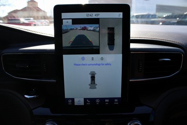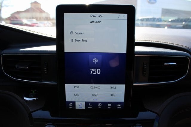 EQUIPPED WITH Equipment Group 701A, Premium Technology Package (10.1 LCD Capacitive Portrait Touchscreen, 2 Additional Speakers, and Mesa Del Rio Lthr Htd/Vent Capt's Chairs), 4WD, 12 Speakers, 3.31 Non-Limited-Slip Axle Ratio, 3rd row seats: bench, 4-Wheel Disc Brakes, ABS brakes, Air Conditioning, Alloy wheels, AM/FM radio: SiriusXM, Auto High-beam Headlights, Auto-dimming door mirrors, Auto-dimming Rear-View mirror, Automatic temperature control, Brake assist, Bumpers: body-color, Compass, Delay-off headlights, Driver door bin, Driver vanity mirror, Dual front impact airbags, Dual front side impact airbags, Electronic Stability Control, Emergency communication system: SYNC 3 911 Assist, Exterior Parking Camera Rear, FordPass Connect, Four wheel independent suspension, Front anti-roll bar, Front Bucket Seats, Front Center Armrest, Front dual zone A/C, Front fog lights, Front reading lights, Fully automatic headlights, Garage door transmitter: HomeLink, Genuine wood dashboard insert, Heated door mirrors, Heated front seats, Heated rear seats, Heated steering wheel, Illuminated entry, Knee airbag, Leather steering wheel, Low tire pressure warning, Memory seat, Navigation System, Occupant sensing airbag, Outside temperature display, Overhead airbag, Overhead console, Panic alarm, Passenger door bin, Passenger vanity mirror, Power door mirrors, Power driver seat, Power Liftgate, Power passenger seat, Power steering, Power windows, Radio data system, Radio: B&O Sound System by Bang & Olufsen, Rain sensing wipers, Rear air conditioning, Rear anti-roll bar, Rear reading lights, Rear window defroster, Rear window wiper, Remote keyless entry, Roof rack: rails only, Security system, SelectShift Capability w/Paddle Shifters, Speed control, Speed-sensing steering, Speed-Sensitive Wipers, Split folding rear seat, Spoiler, Steering wheel memory, Steering wheel mounted audio controls, SYNC 3 Communications & Entertainment System, SYNC 3/Apple CarPlay/Android Auto, Tachometer, Telescoping steering wheel, Tilt steering wheel, Traction control, Trip computer, Turn signal indicator mirrors, Twin Panel Moonroof, Variably intermittent wipers, Ventilated front seats, Voice-Activated Touchscreen Navigation System, and Wheels: 20 10-Spoke Aluminum w/KR Center Cap.