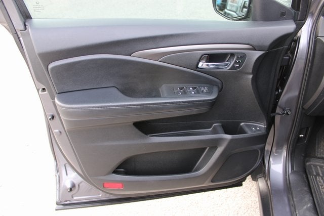 EQUIPPED WITH 4-Wheel Disc Brakes, 4.334 Axle Ratio, 7 Speakers, A/V remote: CabinControl, ABS brakes, Air Conditioning, Alloy wheels, AM/FM radio: SiriusXM, Apple CarPlay/Android Auto, Auto High-beam Headlights, Auto-dimming Rear-View mirror, Automatic temperature control, Blind Spot Information (BSI) System warning, Brake assist, Bumpers: body-color, Delay-off headlights, Driver door bin, Driver vanity mirror, Driver's Seat Mounted Armrest, Dual front impact airbags, Dual front side impact airbags, Electronic Stability Control, Emergency communication system: HondaLink Assist, Exterior Parking Camera Rear, Forward collision: Collision Mitigation Braking System (CMBS) + FCW mitigation, Four wheel independent suspension, Front anti-roll bar, Front Bucket Seats, Front Center Armrest, Front dual zone A/C, Front fog lights, Front reading lights, Fully automatic headlights, Garage door transmitter: HomeLink, Heated door mirrors, Heated Front Bucket Seats, Heated front seats, Illuminated entry, Lane departure: Lane Keeping Assist System (LKAS) active, Leather-Trimmed Seats, Low tire pressure warning, Memory seat, Occupant sensing airbag, Outside temperature display, Overhead airbag, Overhead console, Panic alarm, Passenger door bin, Passenger seat mounted armrest, Passenger vanity mirror, Power door mirrors, Power driver seat, Power Liftgate, Power moonroof, Power passenger seat, Power steering, Power windows, Radio data system, Radio: 215-Watt Audio System w/7 Speakers, Rear air conditioning, Rear anti-roll bar, Rear reading lights, Rear seat center armrest, Rear window defroster, Rear window wiper, Remote keyless entry, Security system, Speed control, Speed-sensing steering, Split folding rear seat, Spoiler, Steering wheel mounted audio controls, Tachometer, Telescoping steering wheel, Tilt steering wheel, Traction control, Trip computer, Turn signal indicator mirrors, Variably intermittent wipers, and Wheels: 20 Split-Spoke Pewter Gray Alloy.
