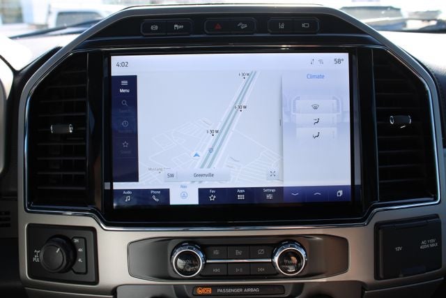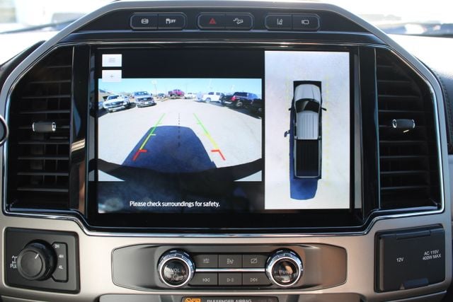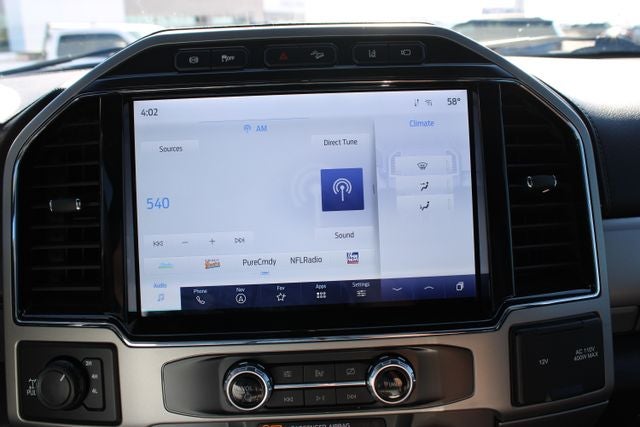 EQUIPPED WITH Chrome Package (6 Angular Bright Polished Step Bars, Body-Color Door Handles w/Chrome Insert, Chrome Exhaust Tip, PowerScope Trailer Tow Mirrors w/Heat, Unique Chrome Mirror Caps, and Wheels: 18 Chrome PVD Aluminum), FX4 Off-Road Package (Hill Descent Control, Off-Road Specifically Tuned Shock Absorbers, and Unique FX4 Off-Road Box Decal), GVWR: 11,300 lb Payload Package, Lariat Value Package (Easy Entry®/Exit Memory Driver's Seat Feature, LED Box Lighting, Memory Power-Adjustable Pedals, Power Heated/Ventilated Driver Seat w/Memory, Power Heated/Ventilated Passenger Seat, PowerScope Trailer Tow Mirrors w/Memory, and Remote Start System), Order Code 618A, 4WD, 10 Speakers, 4-Wheel Disc Brakes, ABS brakes, Adjustable pedals, Air Conditioning, Alloy wheels, AM/FM radio: SiriusXM with 360L, Auto High-beam Headlights, Auto-dimming Rear-View mirror, Automatic temperature control, Brake assist, Bumpers: chrome, Compass, Delay-off headlights, Driver door bin, Driver vanity mirror, Dual front impact airbags, Dual front side impact airbags, Electronic Stability Control, Emergency communication system: SYNC 4 911 Assist, Engine Block Heater, Exterior Backup Alarm (Pre-Installed), Exterior Parking Camera Rear, Flow-Through Console, Front anti-roll bar, Front Bucket Seats, Front Center Armrest, Front dual zone A/C, Front fog lights, Front Leather Seating Surfaces 40/Console/40, Front License Plate Bracket, Front reading lights, Fully automatic headlights, Heated door mirrors, Illuminated entry, Lane Departure Warning System, Leather steering wheel, LED Roof Clearance Lights, Low tire pressure warning, Navigation system: Connected Navigation, Outside temperature display, Overhead airbag, Overhead console, Panic alarm, Passenger door bin, Passenger vanity mirror, Power door mirrors, Power driver seat, Power passenger seat, Power steering, Power windows, Pro Trailer Backup Assist, Radio data system, Radio: B&O Sound System by Bang & Olufsen, Rear Parking Sensors, Rear reading lights, Rear seat center armrest, Rear step bumper, Rear window defroster, Remote keyless entry, Security system, SiriusXM Radio w/360L, Speed control, Split folding rear seat, Steering wheel mounted audio controls, SYNC 4 w/Enhanced Voice Recognition, Tachometer, Tailgate Step & Handle, Telescoping steering wheel, Tilt steering wheel, Tough Bed Spray-In Bedliner, Traction control, Trip computer, Turn signal indicator mirrors, Ultimate Trailer Tow Camera System, Variably intermittent wipers, and Wheels: 18 Bright Machined Cast Aluminum.