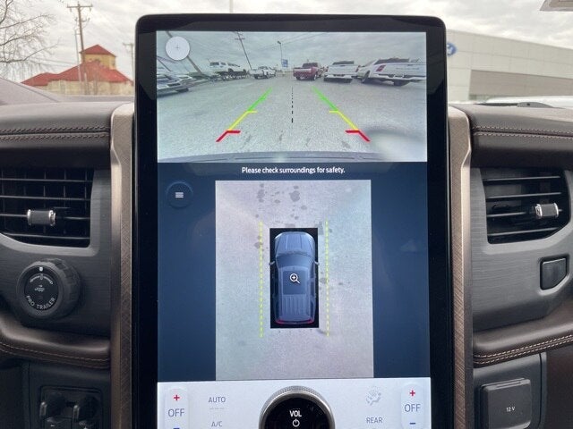 EQUIPPED WITH Equipment Group 400A Standard Package, Heavy-Duty Trailer Tow Package (26mm Engine Radiator, 360-Degree Camera w/Trailer Reverse Guidance, Integrated Trailer Brake Controller, and Pro Trailer Backup Assist), 22 Speakers, 3rd row seats: split-bench, 4-Wheel Disc Brakes, ABS brakes, Adjustable pedals, Air Conditioning, Alloy wheels, AM/FM radio, Auto High-beam Headlights, Auto Start-Stop Removal (DISC), Auto-dimming door mirrors, Auto-dimming Rear-View mirror, Automatic temperature control, Brake assist, Bumpers: body-color, Compass, Continuous Controlled Damping (CCD), Delay-off headlights, Driver door bin, Driver vanity mirror, Dual front impact airbags, Dual front side impact airbags, Electronic Stability Control, Emergency communication system: SYNC 4 911 Assist, Exterior Parking Camera Rear, Four wheel independent suspension, Front anti-roll bar, Front Bucket Seats, Front Center Armrest, Front dual zone A/C, Front fog lights, Front reading lights, Fully automatic headlights, Garage door transmitter, Genuine wood console insert, Genuine wood dashboard insert, Genuine wood door panel insert, Hands-Free Foot-Activated Liftgate Removal (DISC), Heated door mirrors, Heated front seats, Heated rear seats, Heated steering wheel, Heated/Vent Prem Del Rio Lthr Fr Captain's Chairs, Illuminated entry, Leather steering wheel, Low tire pressure warning, Memory seat, Navigation System, Occupant sensing airbag, Outside temperature display, Overhead airbag, Overhead console, Panic alarm, Passenger door bin, Passenger vanity mirror, Pedal memory, Power door mirrors, Power driver seat, Power Liftgate, Power moonroof, Power passenger seat, Power steering, Power windows, Radio data system, Radio: B&O Unleashed Sound System by Bang & Olufsen, Rain sensing wipers, Rear air conditioning, Rear anti-roll bar, Rear reading lights, Rear window defroster, Rear window wiper, Reclining 3rd row seat, Remote keyless entry, Second Row Power Windows Removal, Security system, SiriusXM w/360L, Speed control, Speed-sensing steering, Speed-Sensitive Wipers, Split folding rear seat, Spoiler, Steering wheel memory, Steering wheel mounted audio controls, SYNC 4 w/Enhanced Voice Recognition, Tachometer, Telescoping steering wheel, Tilt steering wheel, Traction control, Trip computer, Turn signal indicator mirrors, Variably intermittent wipers, Ventilated front seats, Voltmeter, and Wheels: 22 6-Spoke Polished Aluminum.