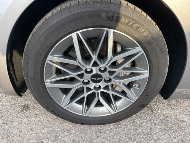 EQUIPPED WITH Option Group 01, 12 Speakers, 4-Wheel Disc Brakes, ABS brakes, Air Conditioning, All-Season Fitted Liners, Alloy wheels, AM/FM radio: SiriusXM, Android Auto & Apple CarPlay, Anti-whiplash front head restraints, Auto High-beam Headlights, Auto tilt-away steering wheel, Auto-dimming door mirrors, Auto-dimming Rear-View mirror, Automatic temperature control, Bumpers: body-color, Compass, Delay-off headlights, Driver door bin, Driver vanity mirror, Dual front impact airbags, Dual front side impact airbags, Electronic Stability Control, Emergency communication system: Genesis Connected Services, Exterior Parking Camera Rear, First Aid Kit, Four wheel independent suspension, Front anti-roll bar, Front Bucket Seats, Front Center Armrest, Front dual zone A/C, Front reading lights, Fully automatic headlights, Garage door transmitter: HomeLink, Heated door mirrors, Heated Front Bucket Seats, Heated front seats, Heated rear seats, Heated steering wheel, Illuminated entry, Knee airbag, Leather steering wheel, Leatherette Seating Surfaces, Low tire pressure warning, Memory seat, Navigation System, Occupant sensing airbag, Outside temperature display, Overhead airbag, Overhead console, Panic alarm, Passenger door bin, Passenger vanity mirror, Power door mirrors, Power driver seat, Power passenger seat, Power steering, Power windows, Radio data system, Radio: AM/FM/HD/SiriusXM Audio System, Rain sensing wipers, Rear anti-roll bar, Rear reading lights, Rear seat center armrest, Rear side impact airbag, Rear window defroster, Remote keyless entry, Security system, Speed control, Speed-sensing steering, Speed-Sensitive Wipers, Steering wheel memory, Steering wheel mounted audio controls, Tachometer, Telescoping steering wheel, Tilt steering wheel, Traction control, Trip computer, Turn signal indicator mirrors, Variably intermittent wipers, Wheel Locks, and Wheels: 18 x 8.0J Alloy.